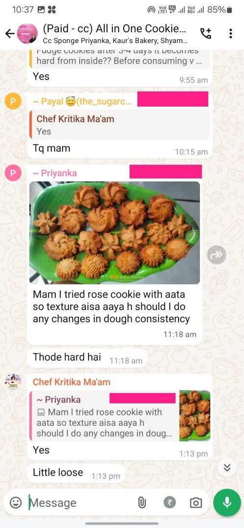 If you have questions, you can ask directly in the private WhatsApp group with Chef Kritika for quick feedback.